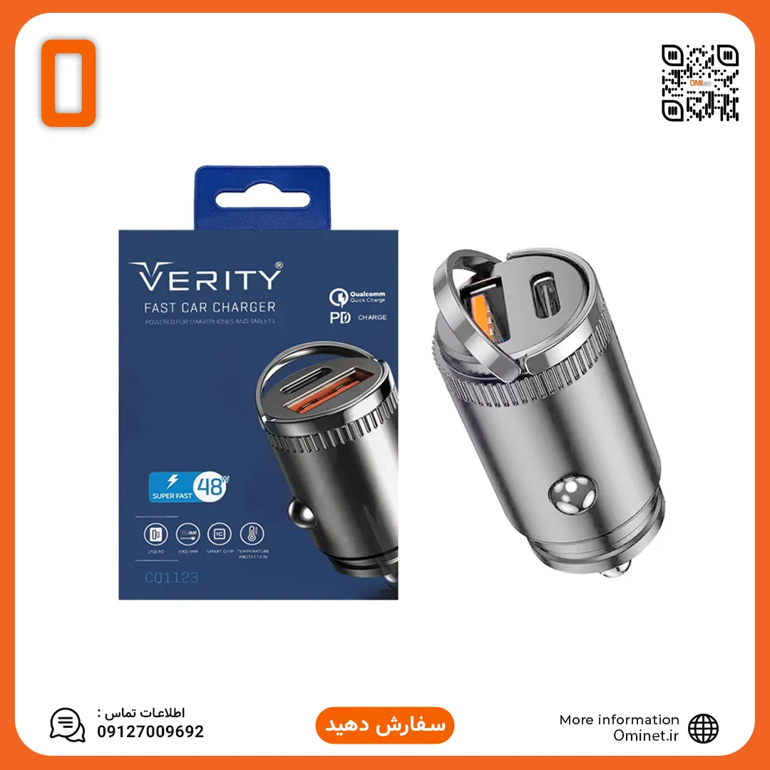 معرفی شارژر فندکی وریتی مدل CQ1123 به همراه کابل Type-C