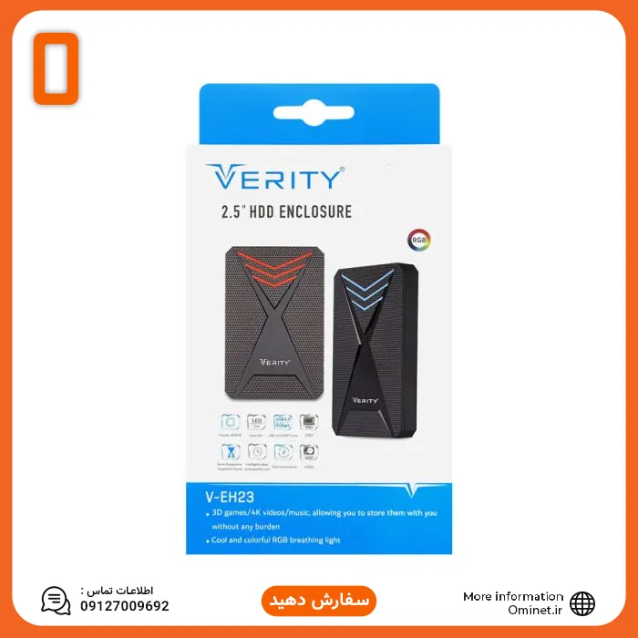 قاب هارد 2.5 اینچی USB 3.0 مدل EH23 برند VERITY با طراحی بدون پیچ و مهره، سرعت انتقال بالا، نورپردازی RGB و بدنه مقاوم و سبک، گزینه‌ای عالی برای افرادی است که به دنبال یک قاب هارد سریع، زیبا و کاربردی هستند. این محصول با ارائه کیفیت و عملکردی مطمئن، انتخابی مناسب برای محافظت و استفاده حرفه‌ای از هارد اکسرنال شماست.